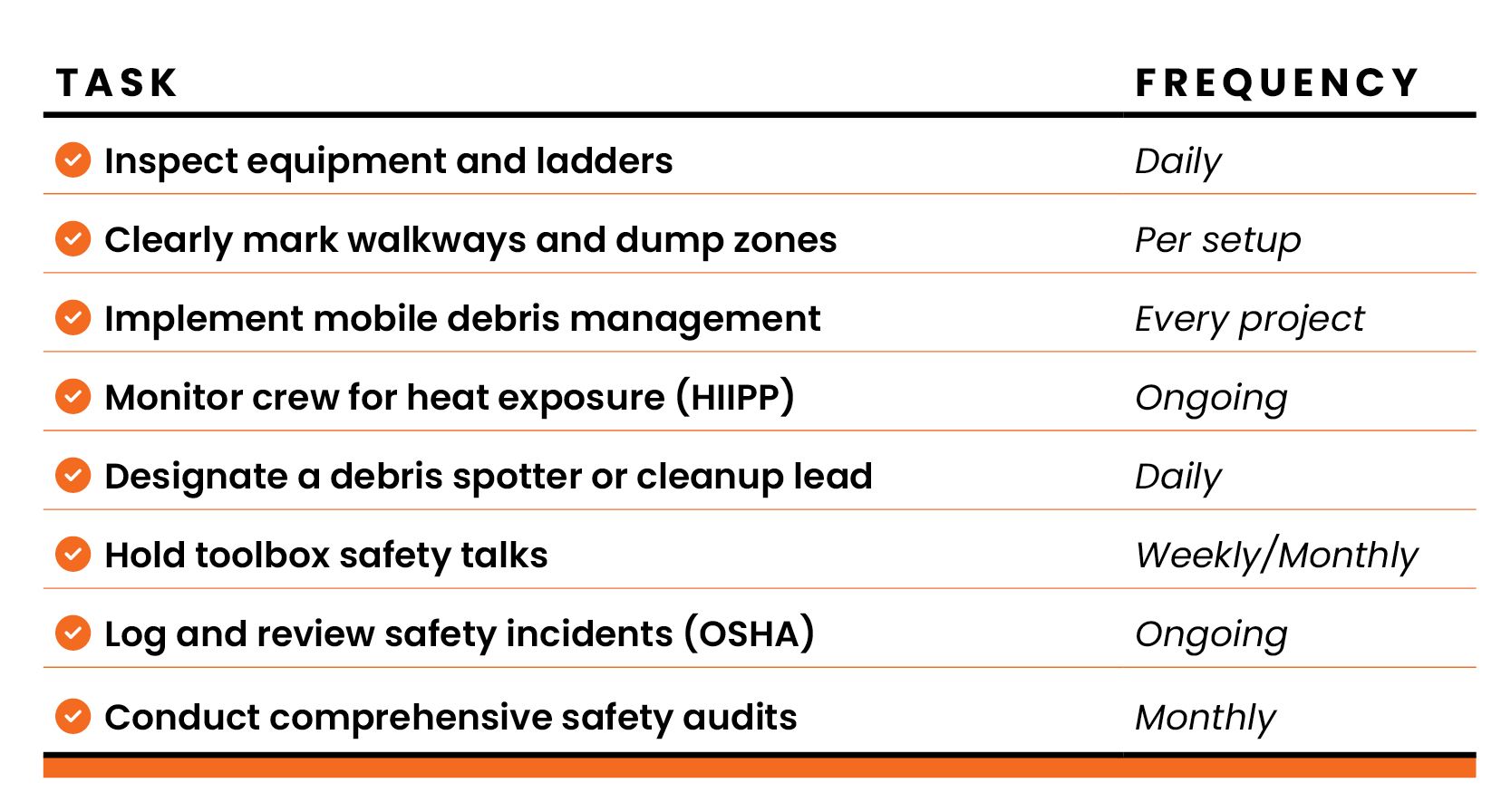 While PPE is essential, overlooked jobsite organization is a leading root cause of injuries. OSHA identifies messy debris piles, poorly staged materials, and outdated debris disposal as key contributors to falls, trips, heat exposure, and unnecessary lifting.